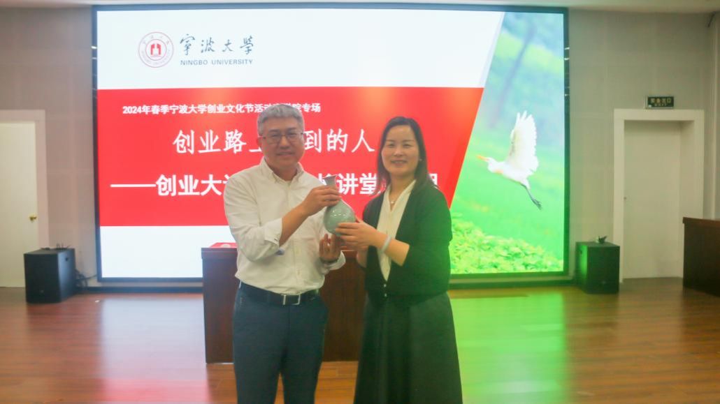 随后,韩雯琛代表百家乐策略 为朱灵峰校友赠送纪念品。