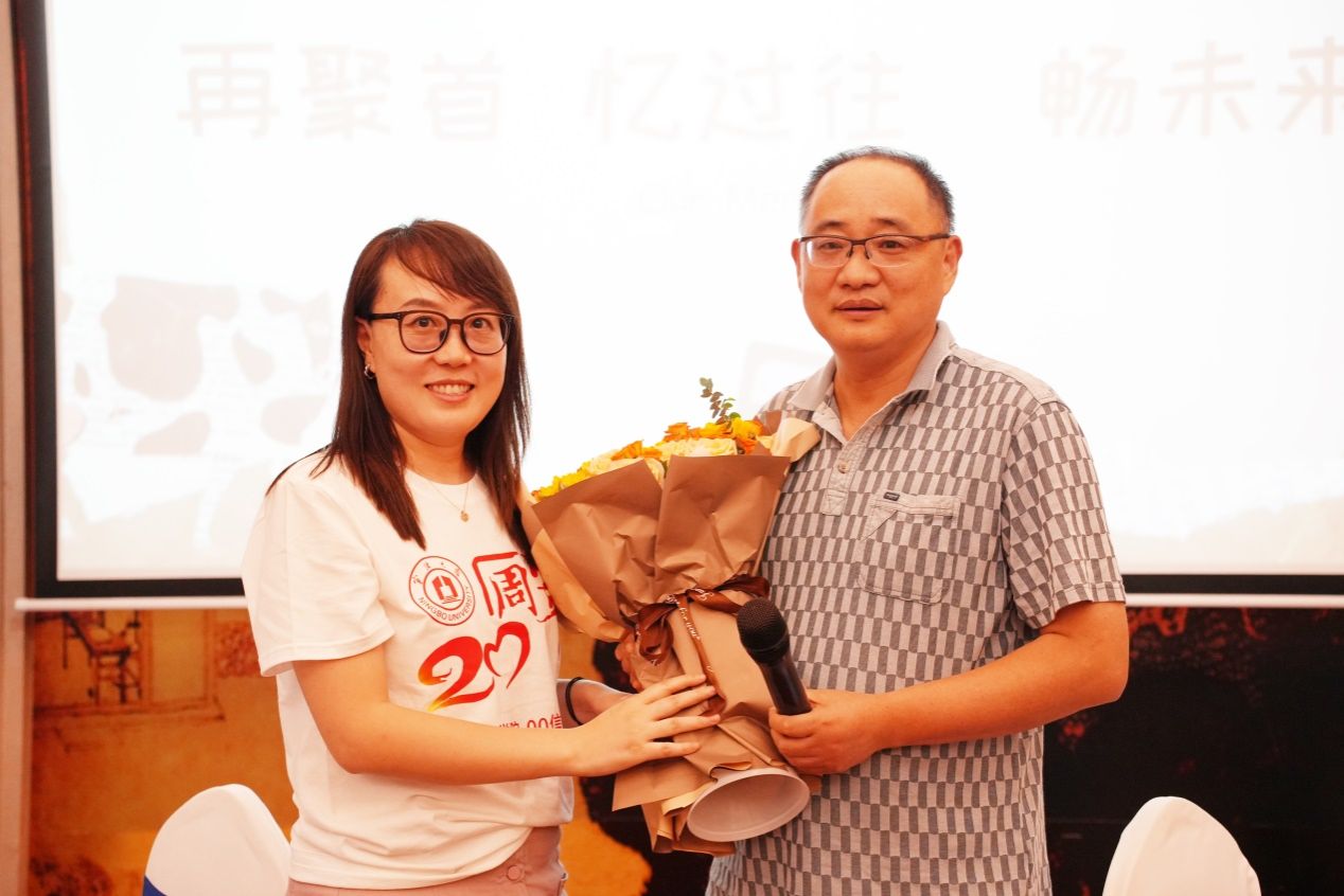 下午2点,校友们在宁大宾馆二楼多功能厅举行“再聚首、忆过往,畅未来”主题交流活动,校友们依次回顾了大学期间的美好回忆,介绍各自工作、生活近况。会上,校友们向班主任张宇萌献花,并进行热情的交流,未能现场参会的校友也发来了祝福视频,祝愿母校越来越好。