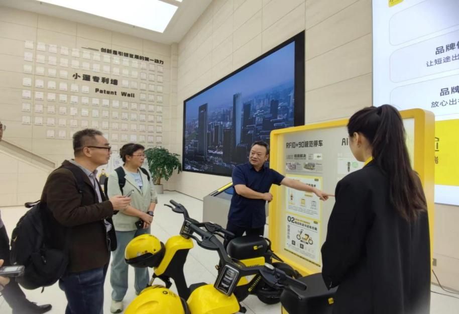 在工作人员的带领下,师生一行首先参观了小遛共享公司的展厅、观看了小遛共享公司产品与经营理念的宣传片,对小遛共享的数字化运营、精细化管理、以用户为中心的经营理念等有了进一步感受和理解。