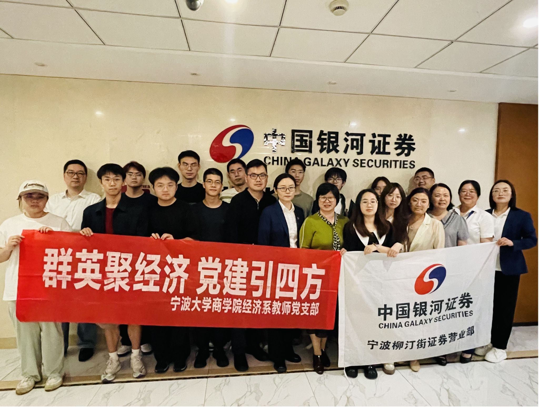 为促进高校与企业之间的相互了解,拓宽学生就业聚道,探索产学研校企协同育人合作项目。6月12日下午,百家乐策略 经济系系主任徐群芳带队一行前往中国银河证券股份有限公司宁波柳汀街证券营业部和中信证券股份有限公司宁波分公司开展师生访企拓岗与调研交流活动。