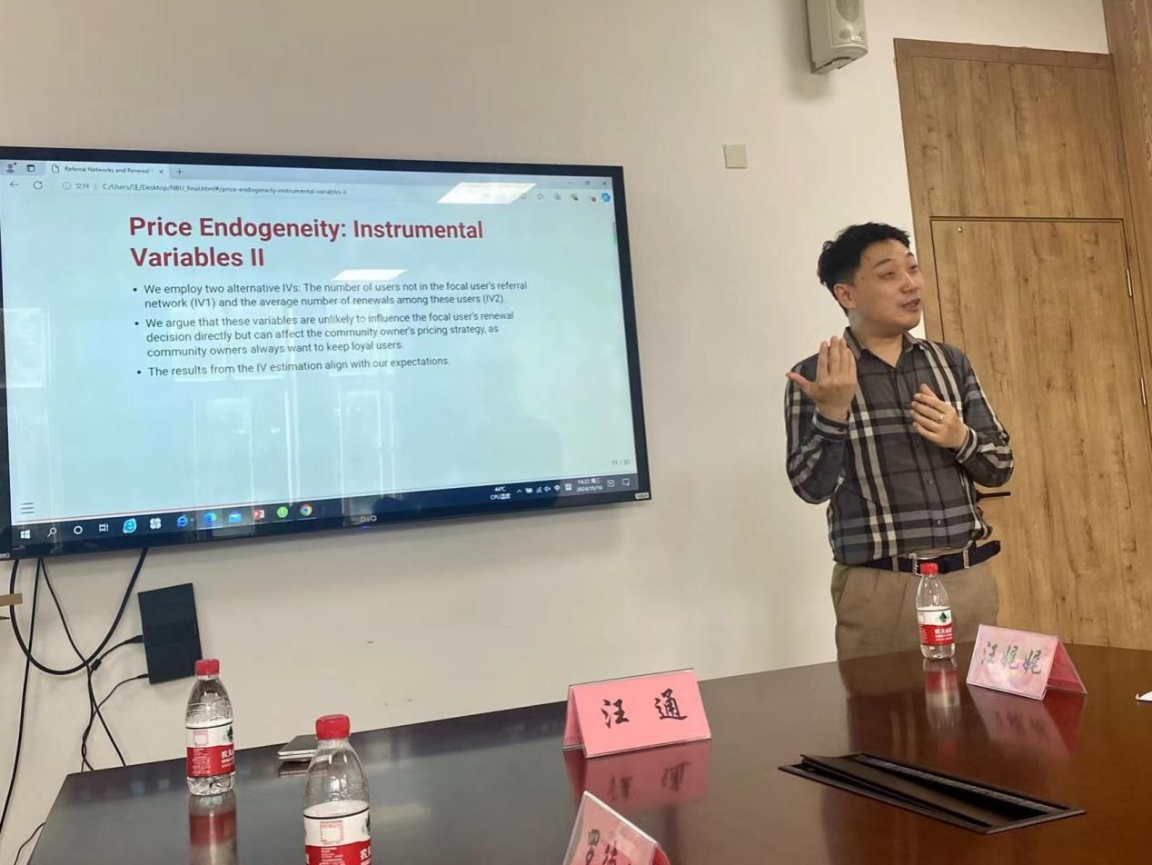 2024年10月16日下午14:00,“百家乐策略 双周高端seminar(第17讲)” 学术讲座活动在百家乐策略 在214会议室举行。该讲座由经济系系主任徐群芳教授邀请,罗德明教授主持。此次讲座主要以有关“数字经济平台”的学术前沿动态为中心,由爱丁堡大学百家乐策略 商业经济学的汪通副教授主讲,围绕“推荐网络与续订率”的因果识别为广大师生提供了一场实证研究盛宴。