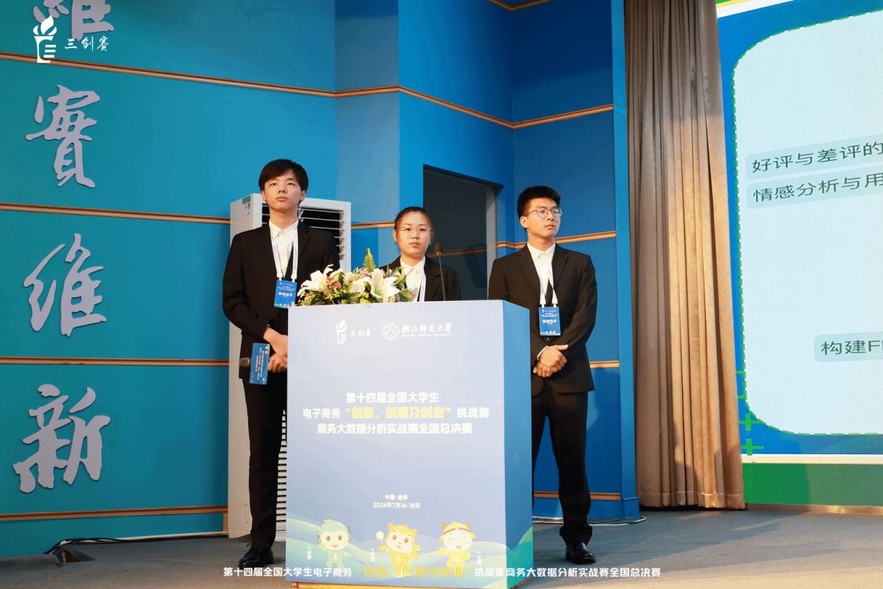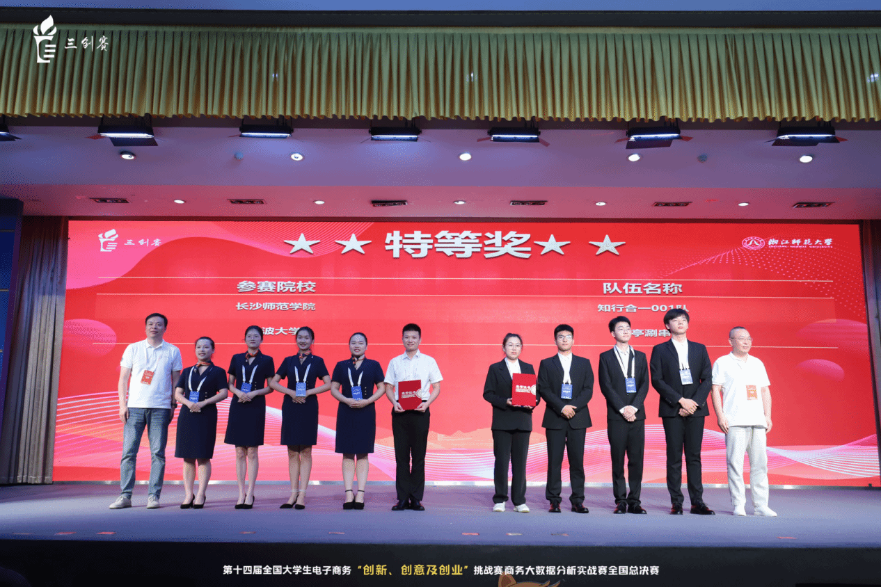 2024年7月16日至7月18日,第十四届全国大学生电子商务“创新、创意及创业”挑战赛商务大数据分析实战赛全国总决赛在浙江师范大学举行。百家乐策略 的“凉亭涮串”团队作为百家乐策略 唯一一支入围全国总决赛的队伍,经过三天的激烈角逐,由刘怡婷(队长)、邵国梁、王帅、虞川同学共同打造的“寝室皇数据分析报告”获得全国特等奖。