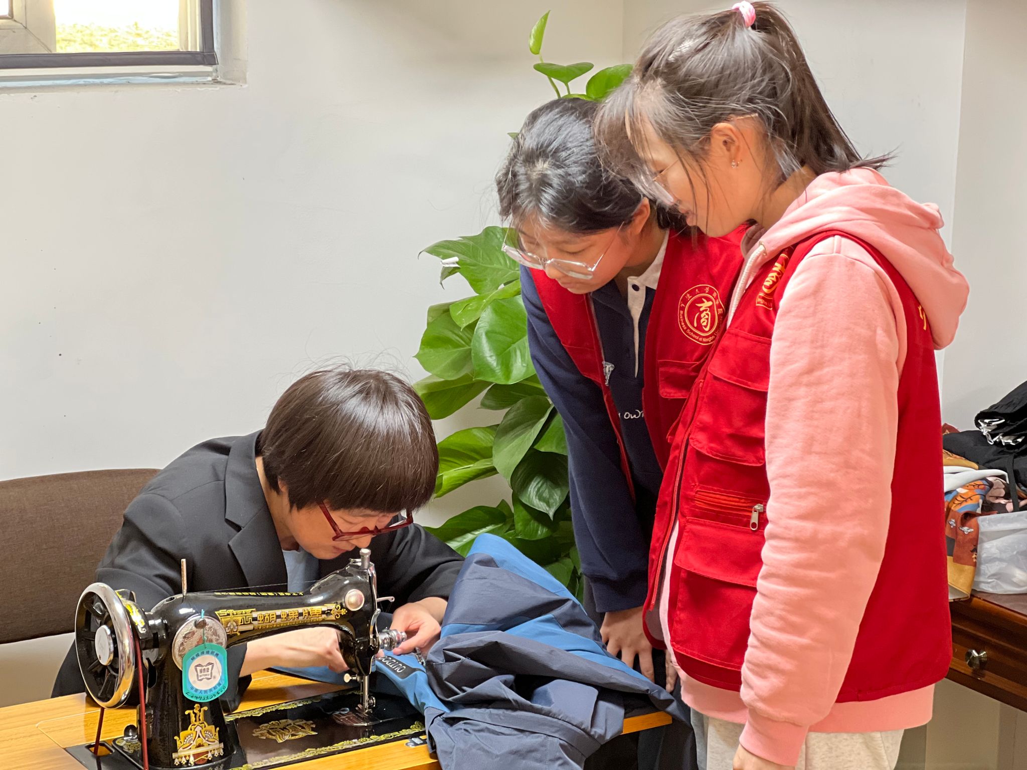 在活动现场,手工制作活动吸引了多名学生参与,大家纷纷拿着破损、残缺的袜子前来“变废为宝”。志愿者们在阿姨的悉心指导下,通过小手工的方式,利用神奇双手,为破旧袜子“改头换面”,每一针一线都充满了温暖的力量。