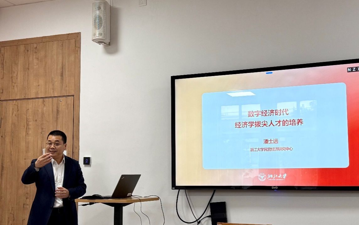 浙江大学民营经济研究中心主任潘士远教授围绕“数字经济时代经济学拔尖人才的培养”做了报告,并提出要通过优化学科生态,提升跨学科融合保障能力;强化学科会聚,提升有组织科研创新成效;构筑学科优势,提升交叉类学科发展水平等方面来发展经济学专业以及培养经济学创新拔尖人才。