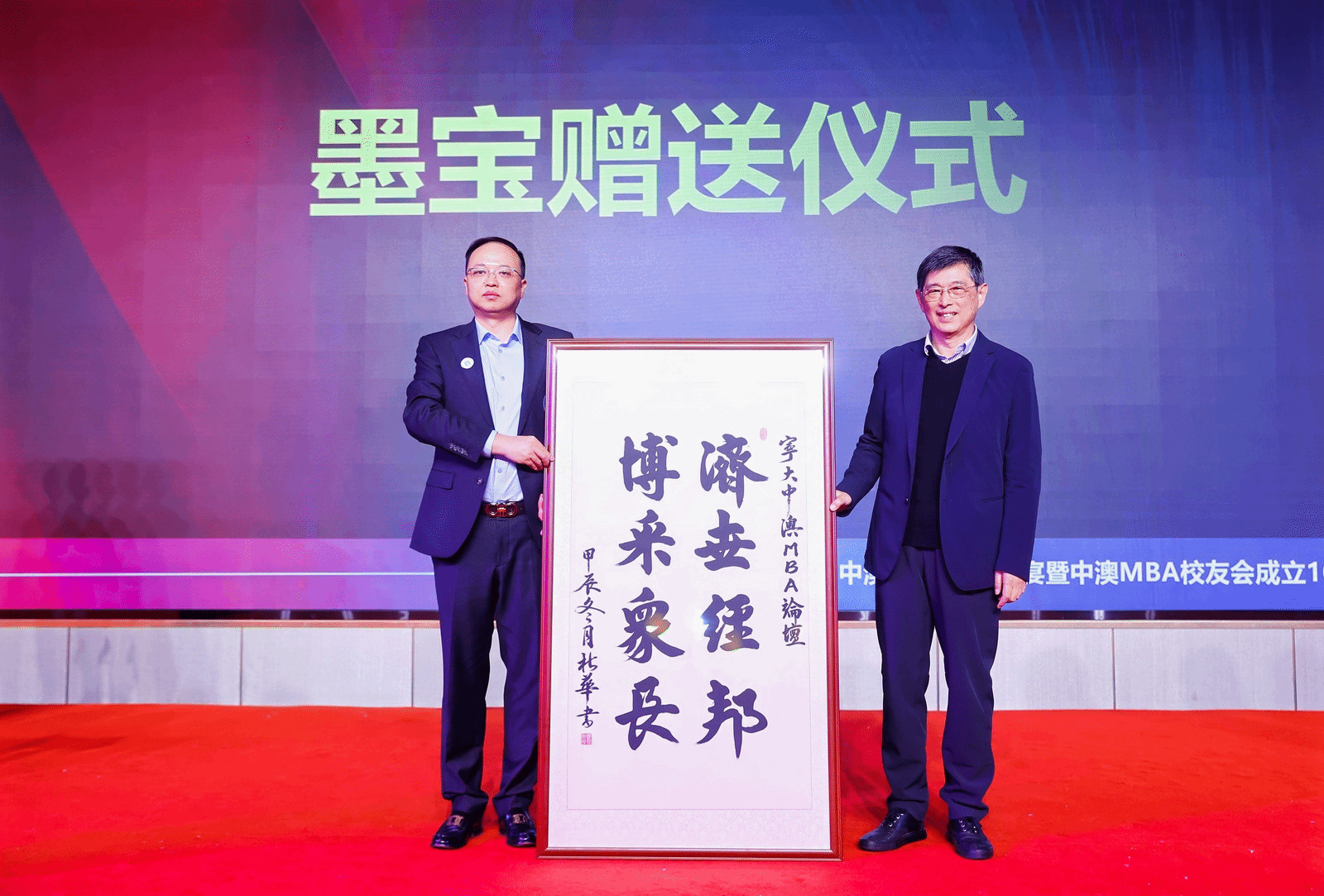 论坛结束后,举办了校友晚宴。百家乐策略 校友会会长聂秋华用十个“精”高度评价了此次论坛的举办,并向中澳MBA校友会赠送了亲手书写的墨宝“博采众长,济世经邦”。年会还对为项目建设和校友会发展做出卓著贡献的校友老师和本次活动的赞助单位进行了表彰,颁发了领航奖、伯乐奖、学科建设贡献奖、贡献至尊奖、贡献卓越奖、筹备贡献奖等奖项,并进行了校友会活动“1+1模式授旗仪式”及“宁大国际会客厅”授牌仪式。