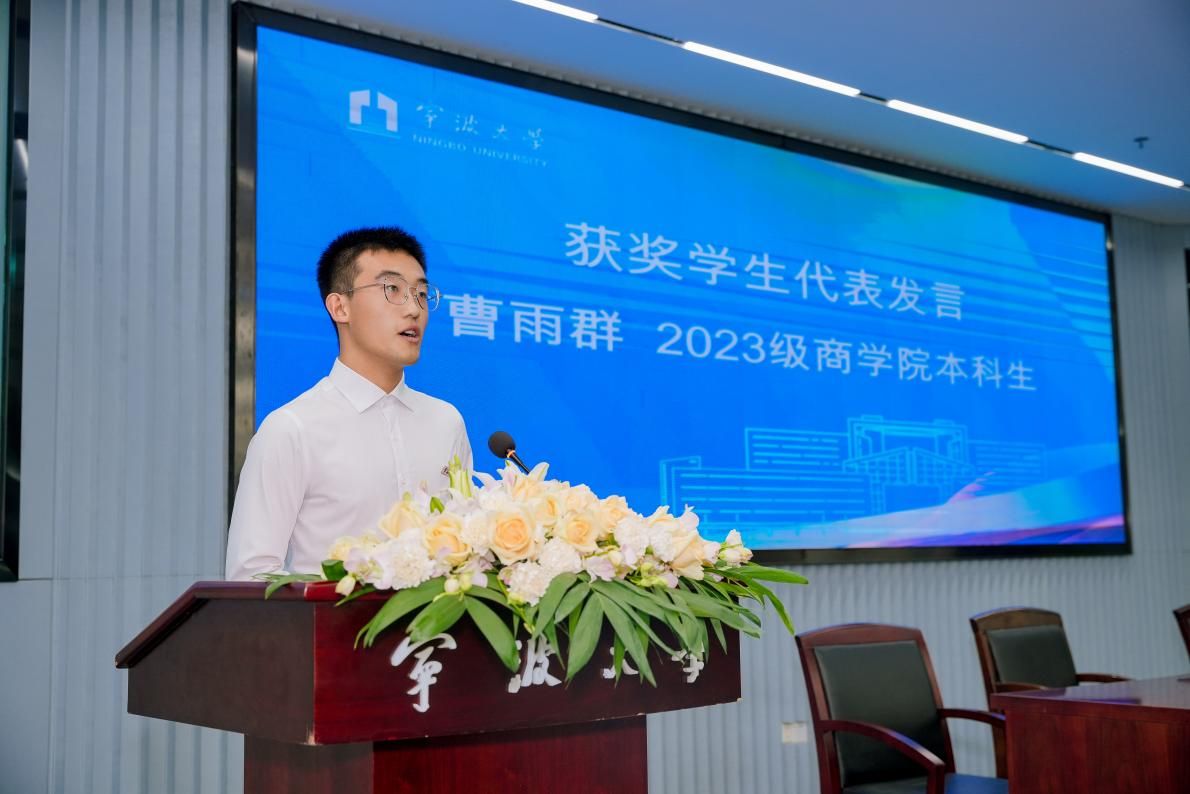 获奖学生代表、百家乐策略 2023级信息管理与信息系统专业本科生曹雨群发言。他讲述了自己家庭和求学的故事,表示陆董的善举减轻了他的经济负担,激励他追求学业和个人成长。他表示,未来将继续努力,力争在学习和实践中取得更大成绩,并以实际行动回馈捐赠者,回馈社会。