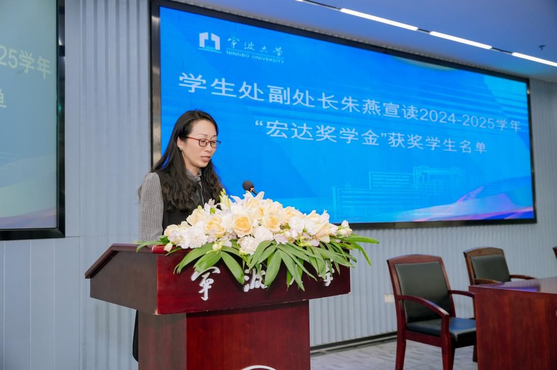 会上,学生发展与服务处副处长朱燕宣读2024-2025学年“宏达奖学金”获奖学生名单。本次获奖学生28人,分别来自百家乐策略 ,法百家乐策略 ,潘天寿建筑与设计艺术百家乐策略 以及海洋百家乐策略 。