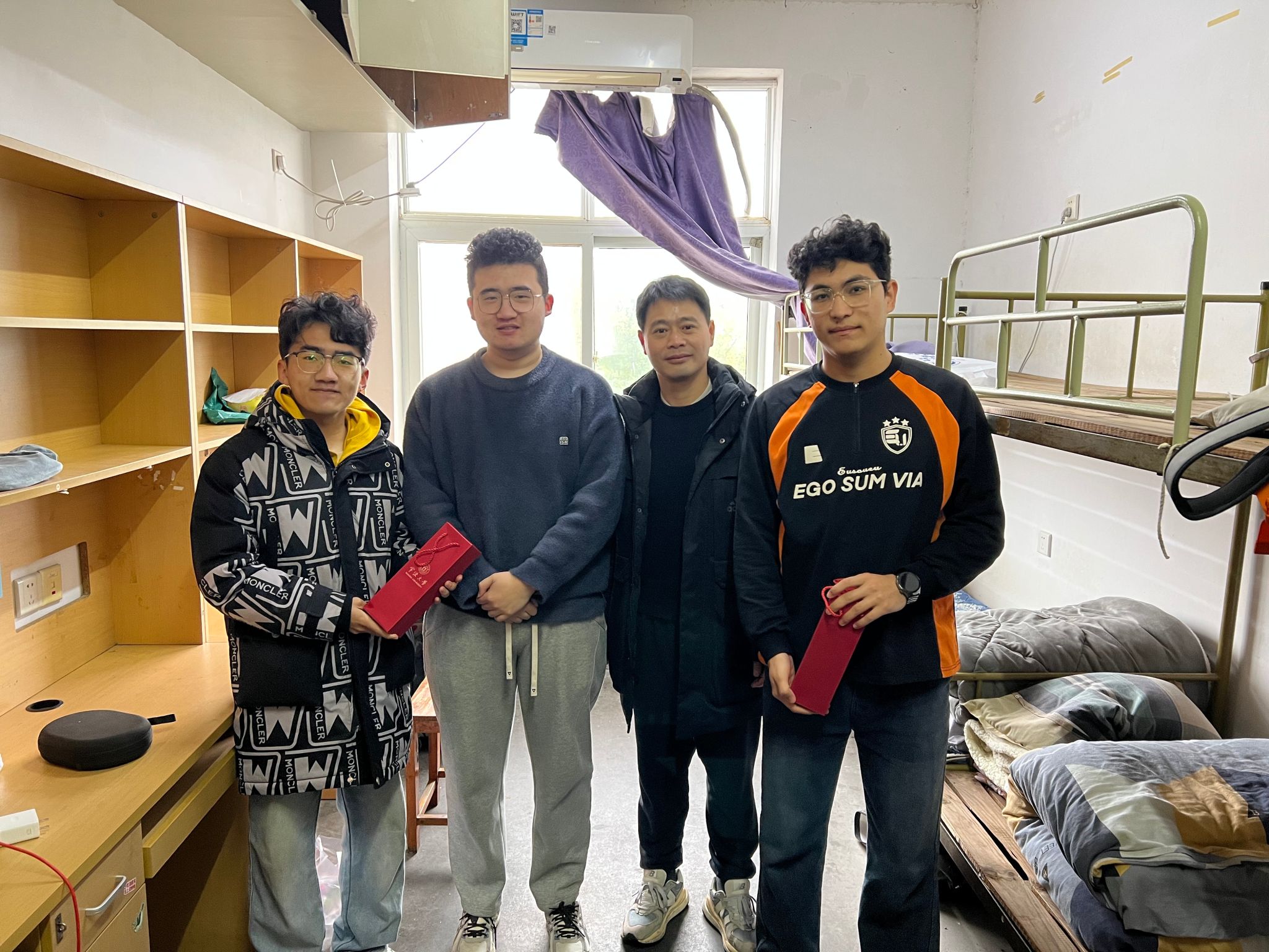 在本部公寓一期,吴敏向同学们送上暖心且真挚的节日祝福和精心准备的新春小礼物,详细询问同学们留校的学习、生活以及寒假期间的安排,认真倾听他们的需求,并叮嘱同学们在寒假留校期间要注意安全,时刻与带班辅导员保持联系,严格遵守校内外的各项管理规定,确保度过一个平安、愉快且充实的假期。