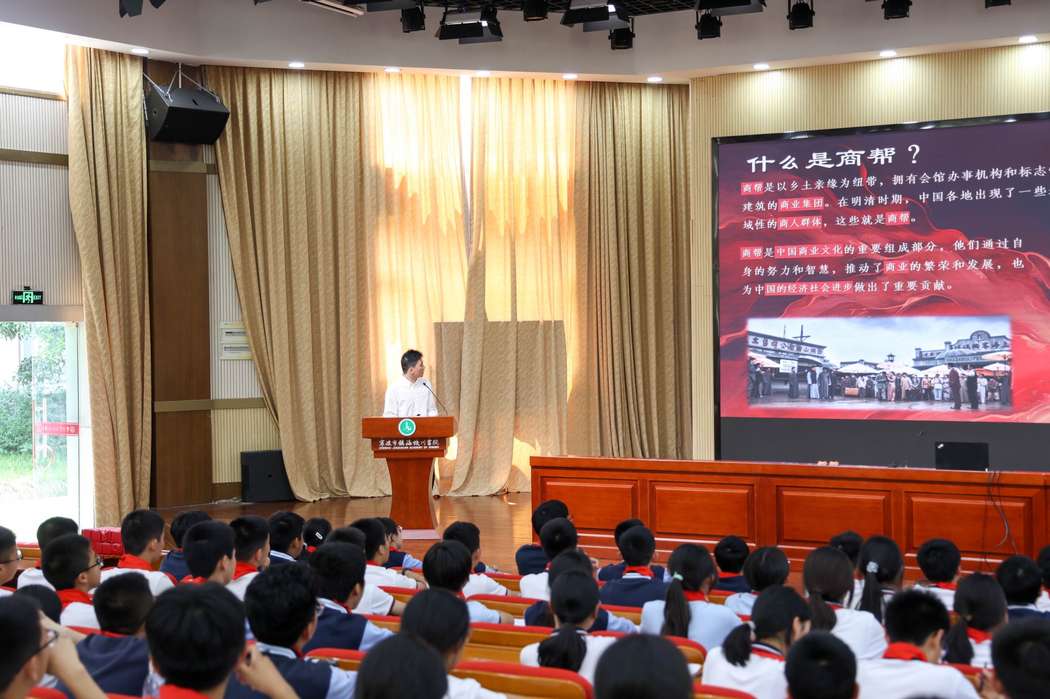 “我是钱陈誉哥哥的小迷弟!”八年级10班学生徐新景对宣讲员钱陈誉所讲的宁波帮故事印象深刻,“跟随着钱陈誉的讲述,我深刻感受到了老一代宁波人,爱国爱家,回报宁波人民的桑梓情怀。我也要好好学习知识,做对国家和社会有用的人。”