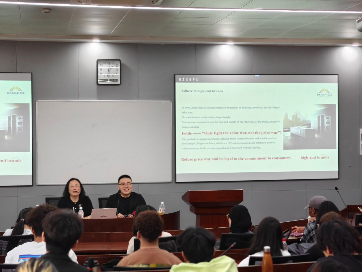 4月9日,百家乐策略 工商管理系在曹光彪525报告厅举办以“中西合璧的方太百亿之路”为主题的双语讲座。此次讲座特邀方太文化研究院副院长刘达主讲,工商管理系副教授陈士慧主持并同步翻译。该活动吸引了几十名中外学生参加,共同探讨方太集团融合中西文化、创新企业管理模式的成功经验。此次讲座为工商管理系组织的“向标杆企业学习”系列品牌活动之一,是继4月1日工商管理系师生举办“走进优秀企业”活动之后,另一个由该系组织的系列品牌活动。