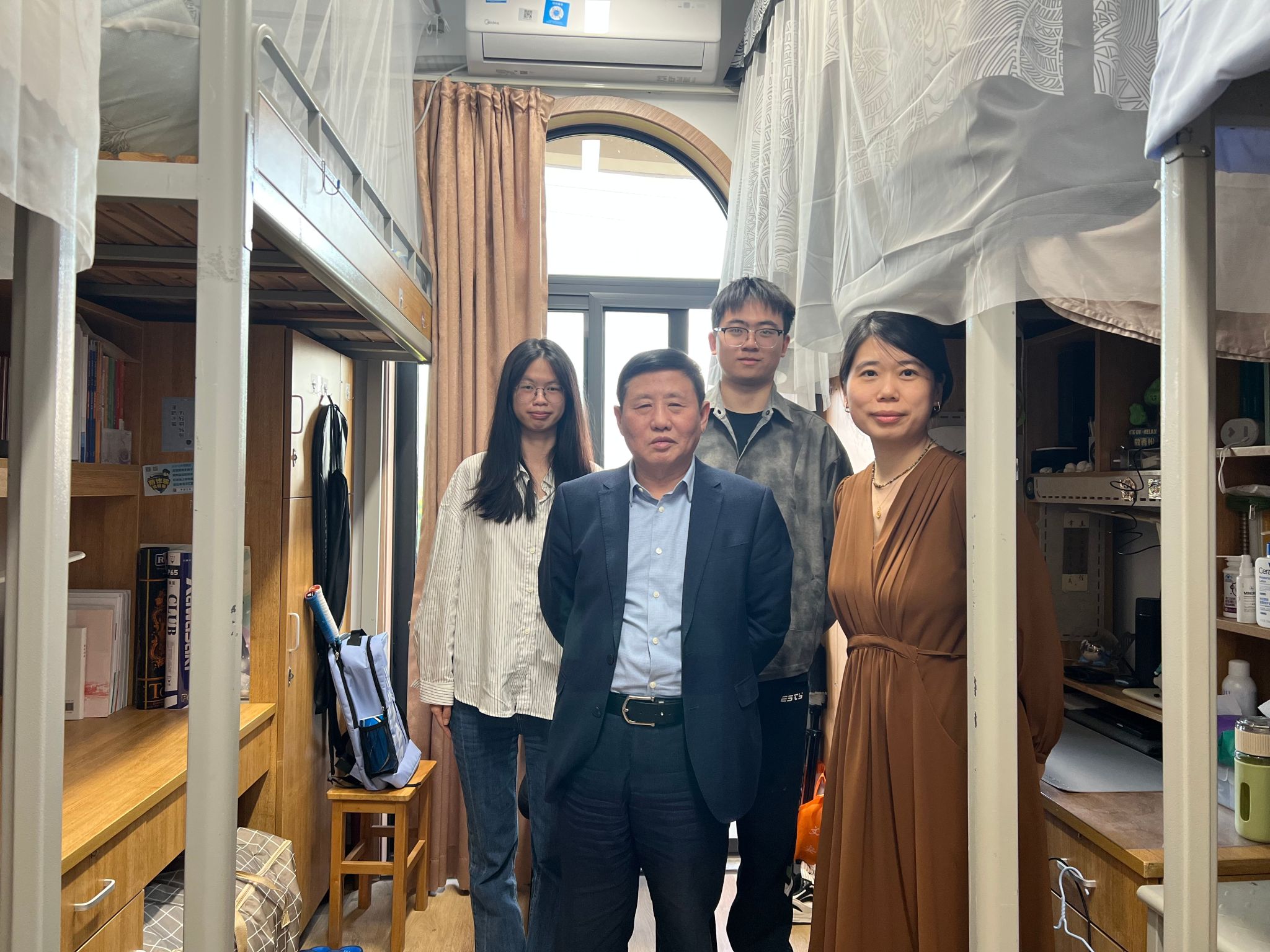 4月29日下午,百家乐策略 特聘院长金祥荣到所联系的本部公寓14号楼学生宿舍走访调研,为同学送上节日祝福。专职辅导员章舒怡、应张磊等陪同。