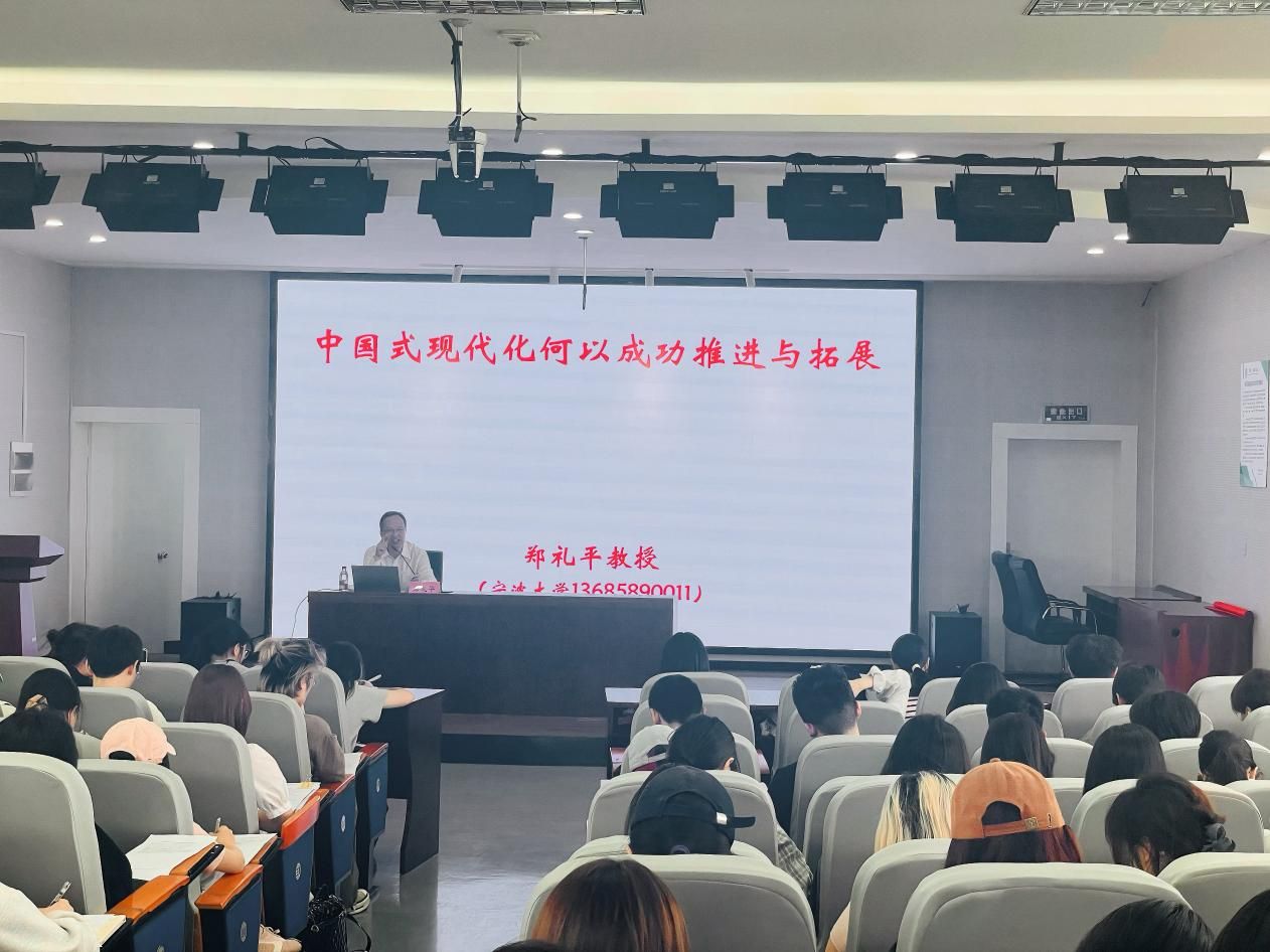 5月7日下午,马克思主义百家乐策略 郑礼平教授在曹光彪楼501报告厅为百家乐策略 180余名师生讲授以“中国式现代化何以能成功推进和拓展”为主题的形势与政策课。