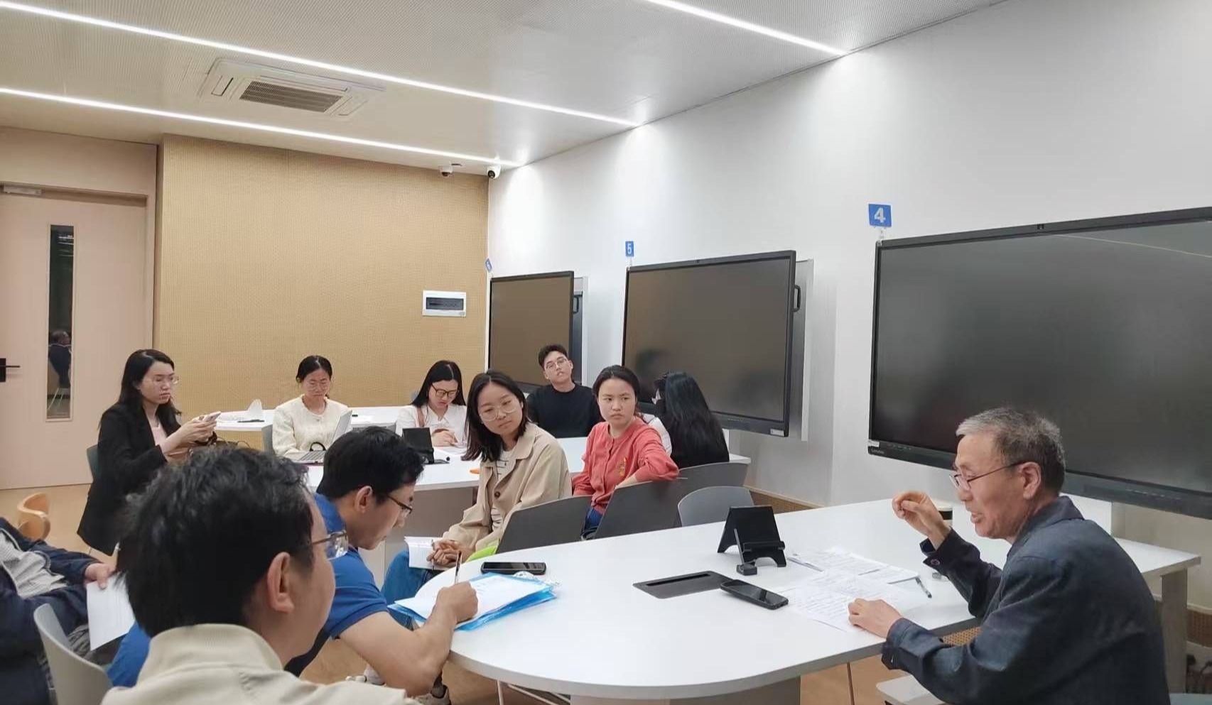 课后督导组吕建锁老师主持了交流研讨。参与研讨的老师们对刘电光老师的课程设计给予了高度评价。大家一致认为,刘老师精心选取了高铁、华为海思、永新光学三个具有代表性的案例故事,通过引导学生开展头脑风暴,鼓励他们进行发散思维,成功营造了一个活跃而富有创造力的课堂氛围。更为重要的是,思政元素在课程中得到了自然且巧妙的融合,让学生在学习专业知识的同时,深刻感受到了自主创新的重要性和意义,真正实现了“知识传授”与“价值引领”的有机统一。参加研讨的青年教师都表示受益匪浅。