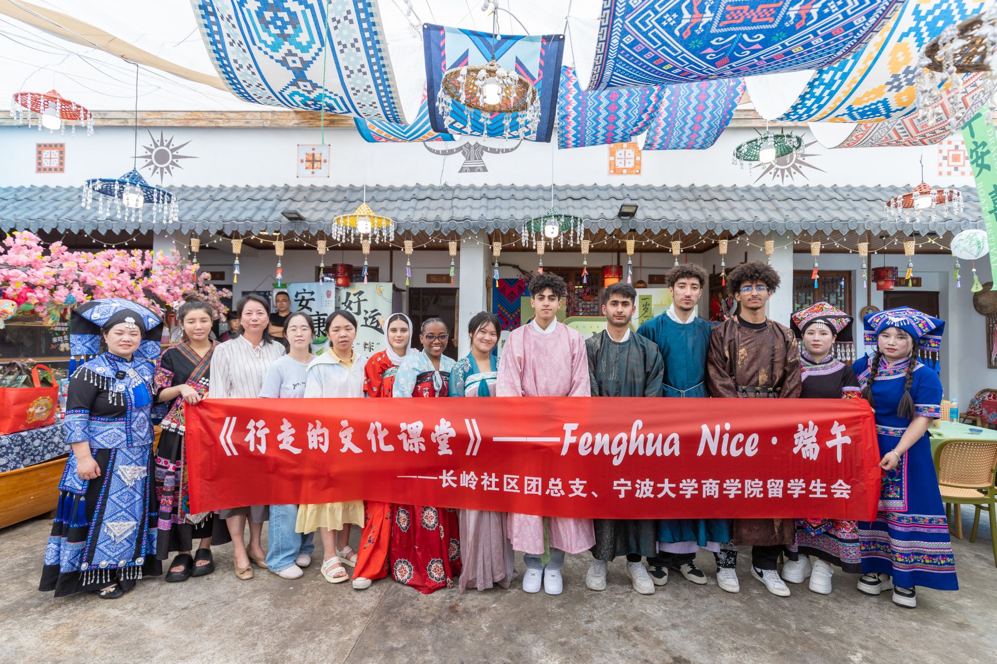 活动现场摆放的数根长条竹竿也吸引了不少学生跃跃欲试。来自坦桑尼亚的杰西卡(音译)在壮族姑娘的指导下反复练习,跟随着韵律节拍,左右脚交替进出,像轻盈的鹿跳过小溪流······她说,“我来中国已经两年了,这是我第一次在宁波体验端午节活动,太让我震撼了。”