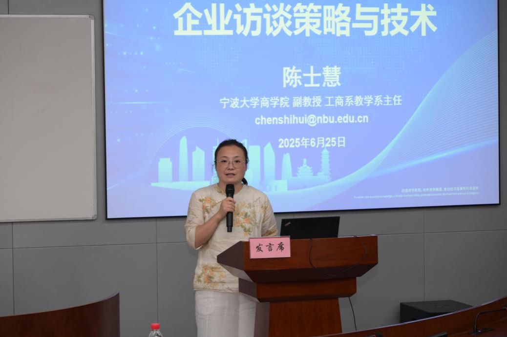 培训伊始,陈士慧副教授围绕社会调查中的案例研究方法与实操流程展开系统讲解,以“准备资料收集”“实施资料收集”为基础框架,结合丰富学术经验,深入阐释案例研究逻辑——强调研究者需保持“刨根问底”的探究精神,从熟悉研究对象出发,预判证据类型、检验多种可能,在证据收集与分析中动态调整研究思路,聚焦“提出好的研究问题”与“案例研究发现过程”,鼓励同学们以“问题导向—迭代回答—最佳解答”为路径,通过多元数据挖掘、持续知识更新,破解管理困惑、揭示现象本质,为调研工作注入学术思考力。