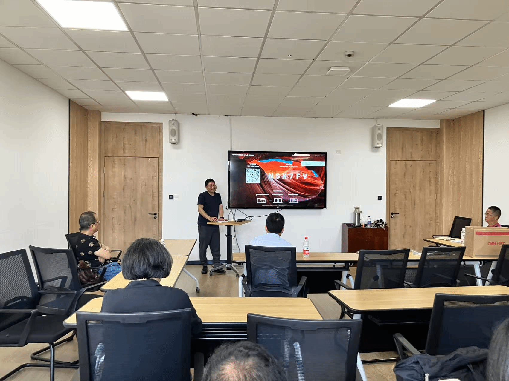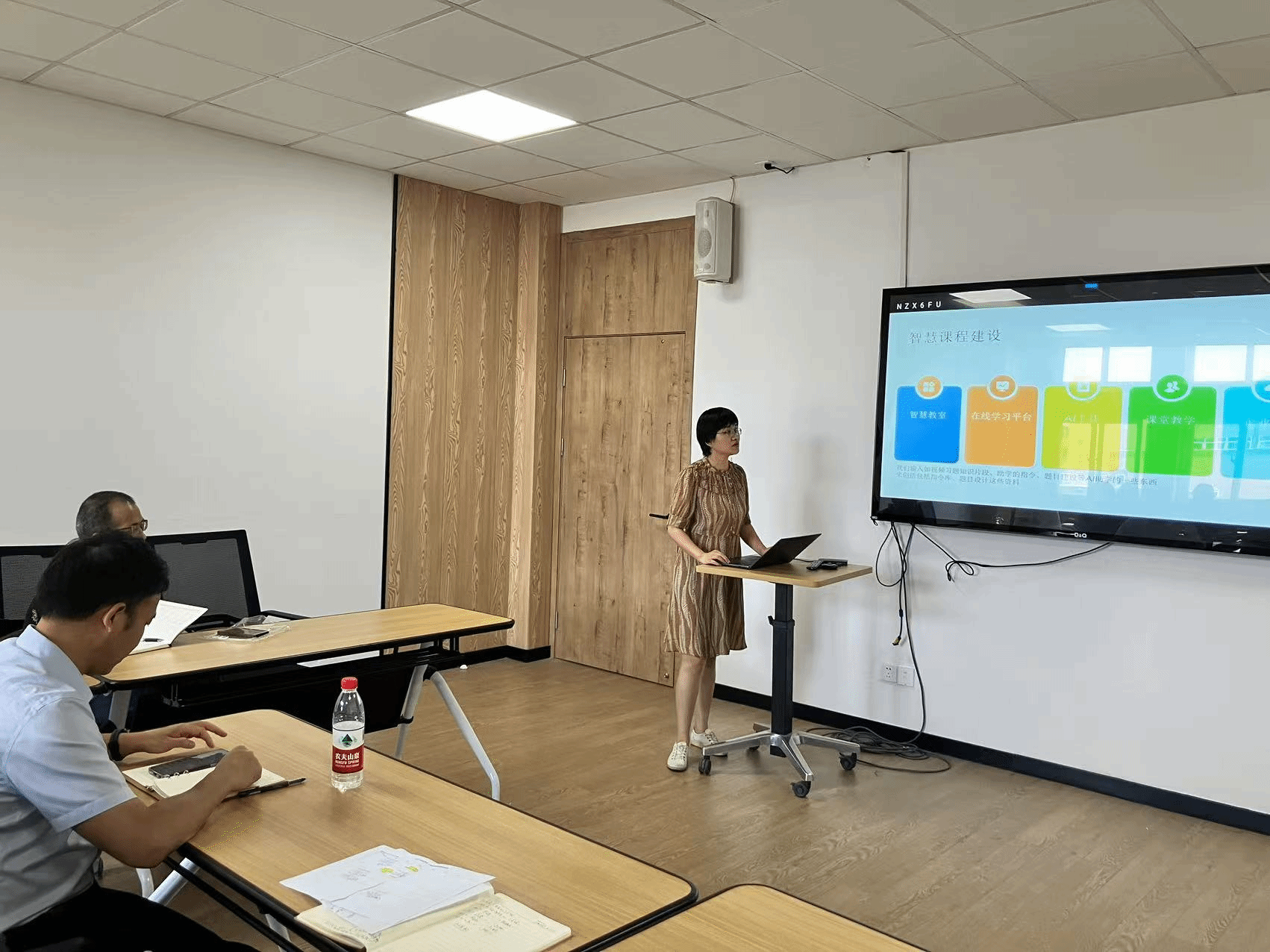 研讨环节,工商管理系教师吴瑶、程振东、杨天飞等分别就《AI+战略》、《AI+人力》、《AI+营销》等前沿课程的建设进展与经验进行了专题汇报。