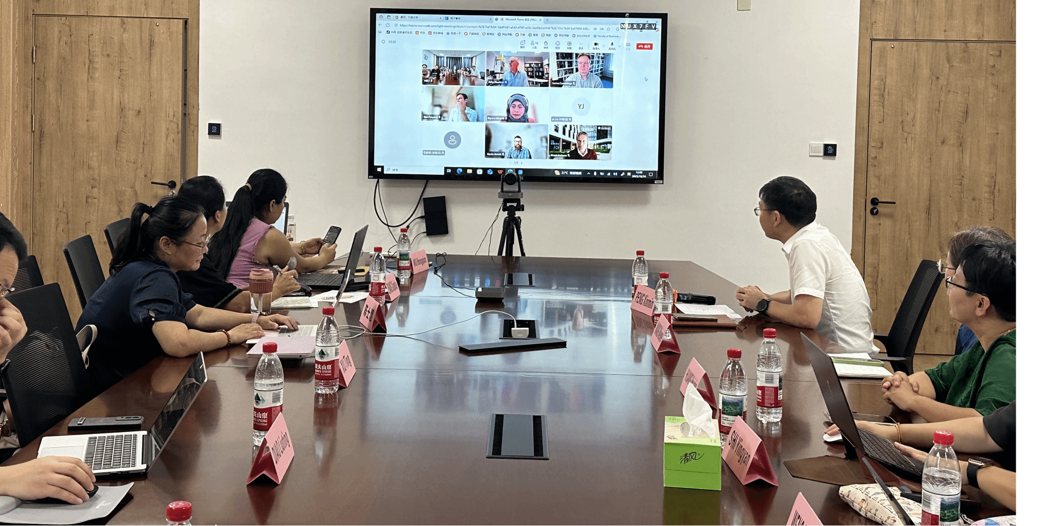 交流会伊始,彭新敏副院长与 Riyana Miranti 副院长分别发表欢迎致辞。彭新敏副院长强调希望通过此次交流进一步打通中澳双方科研和教学协作渠道;Riyana Miranti 副院长则表示,堪培拉大学高度重视与中方的合作,期待以此次交流为起点,推动双方在课程共建、科研合作等领域取得更多成果。随后,中澳双方授课教师依次围绕个人主讲课程以及研究领域进行简要介绍,为后续教学协作与学术交流奠定基础。老师们在交流中达成共识 — 未来将进一步加强沟通,探索联合开展学术研究,搭建合作平台等合作模式。