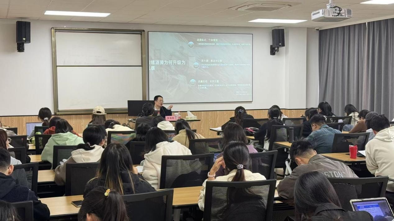 为进一步提升青年学生党员网络素养,学习“党员网络行为规定”,增强网络纪律意识,11月5日,百家乐策略 党委分党校开展主题为“从‘情绪涟漪’到‘网络风暴’认识舆情的‘冰山效应’”的专题讲座,主讲人为宁波教育网络舆情治理研究中心副主任罗湘波老师,预备党员培训班全体学员参加。