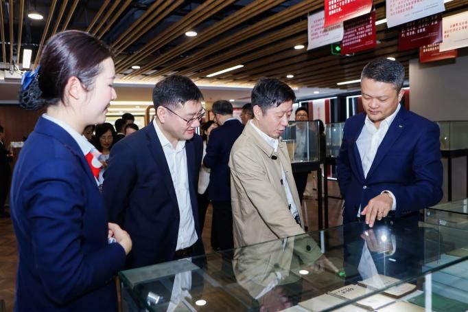 活动在浦发银行21楼活动厅拉开序幕。在工作人员的引导下,众人首先参观了行史馆,深入了解浦发银行的发展历程与品牌文化建设成果。作为成立于1994年改革开放大潮中的宁波市第一家股份制银行,浦发银行的建立获得了当时宁波市委市政府的大力支持,并发行了宁波市首张银行借记卡。随后在7楼红色展厅,众人观摩涵盖了100多国语言版本的《共产党宣言》墙,感受浦发银行“金融为民、担当有为”的红色金融使命。