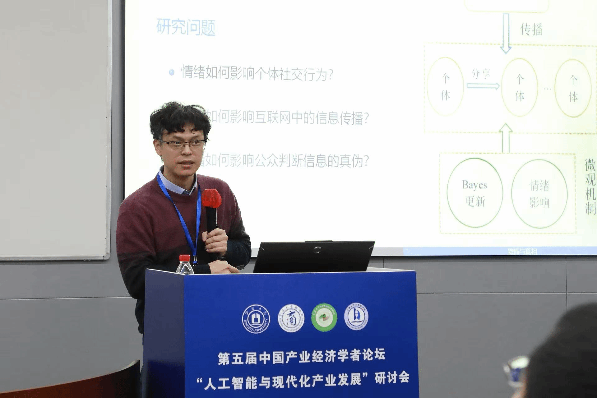 浙江大学求是特聘教授、国家重大人才工程青年项目入选者柯荣住以“激情与真相:论情绪在网络时代信息传播中的双重作用”为题,探讨了数字化生活背景下情绪如何影响个体社交行为和互联网信息传播。他指出,情绪不仅会直接促进信息分享,也会通过社会学习间接影响信息分享,其对分享的总影响并不确定;情绪提高了社会信息总量,但降低了每一条信息的有效性,从而在社会学习中对于低可信度的信息,提高情绪会抑制分享行为,对于高可信度的信息,提高情绪会促进分享行为;若真信息带来的情绪效用一阶随机占优于假信息带来的情绪效用,情绪不会影响公众最终判断出信息的真伪。
