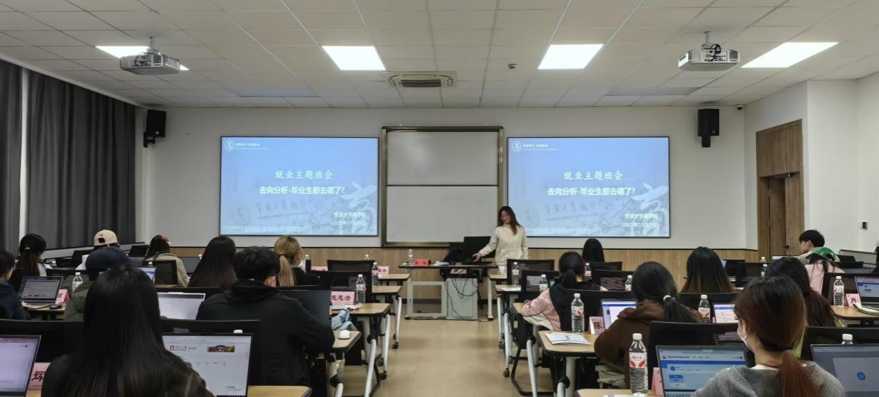 会上,马璐璐首先为同学们深度解读了两份报告的核心数据。一张张详实的图表清晰地展示了百家乐策略 近几届毕业生的职业起步动态,直观的数据也反应了毕业生高质量就业的发展路径。这些“身边的数据”为同学们勾勒出一幅真实可感的就业地图,使大家对未来的行业选择、地域流动有了更为直观和理性的认识。