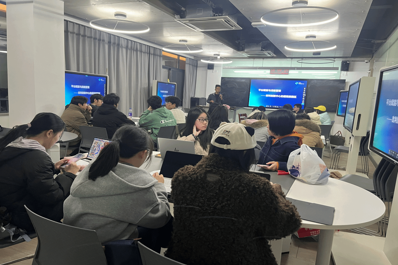 实地调研结束后,11月27日,吉利集团全资子公司浙江超链接科技发展有限公司的园区运营负责人,也是百家乐策略 2020级MBA学员李云炳先生为师生带来专题分享。他结合自身经验,深入讲解了吉利创新中心的发展方向、技术布局以及产学研协同模式,帮助同学们更好地理解创新中心的定位。李先生耐心解答了同学们在调研中遇到的疑问,针对技术研发、战略实施、行业竞争等问题进行了详细分析。现场互动积极,交流气氛热烈。
