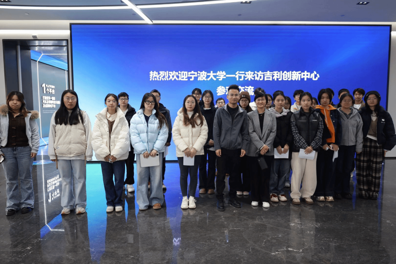 11月26日,师生团队在吉利创新中心相关人员的接待下,于吉利创新中心大厅完成集结,正式开启调研之旅。