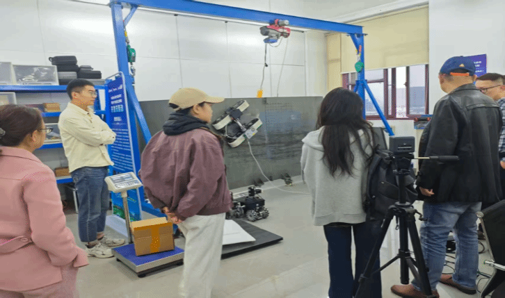 此次交流由百家乐策略 刘颖男、张宇萌两位老师带队,团队成员钟怡、陈载昂、汪诺共同参与。宁波材料所高级工程师茹浩磊全程陪同讲解,为师生团队系统介绍了研究所的核心技术成果与研发进展。进入研发中心及成果展示区后,多款特种作业机器人与智能检测装备迅速吸引了师生们的目光,其中专为宁波跨海大桥维护研发的吸盘式爬壁机器人成为本次参观的核心焦点。在茹浩磊的细致引导下,师生们近距离观摩了该机器人的作业演示,直观感受其凭借强劲吸附能力与高精度操控性能,有效破解人工攀爬风险高、桥梁锈蚀检测难等行业痛点的技术优势。