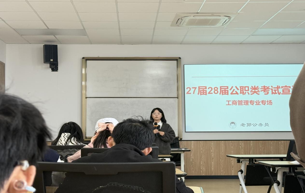 本次宣讲会围绕“经验分享—政策分析—资料支持—真题拆解”四个维度展开,使工商管理专业学生对公职类考试有了更清晰的认识与行动路径。参与同学纷纷表示,活动不仅增强了对未来的确定性,也为后续备考提供了切实可行的方向。