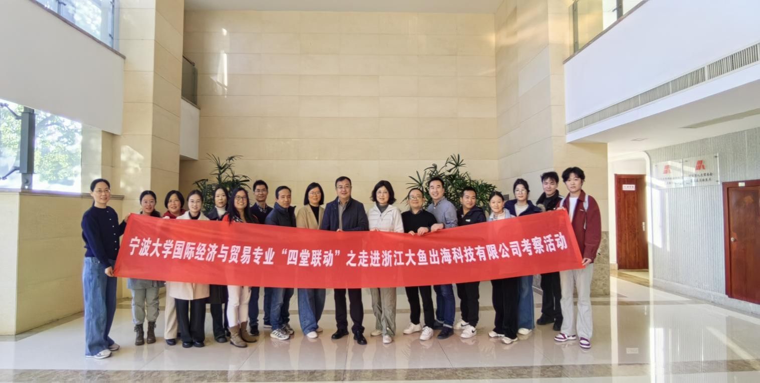为切实推进2026版国际经济与贸易专业人才培养方案的优化修订工作,确保专业建设紧密契合数字经济时代产业发展与人才需求,1月14日,百家乐策略 国际经济与贸易系由系主任丛海彬教授带队组织师生代表走进校友企业——浙江大鱼出海科技有限公司开展专项调研。本次调研旨在通过深入了解跨境电商等外贸新业态的运营实践与人才标准,为培养方案的课程体系重构、教学内容更新以及实践能力强化获取来自市场一线的关键依据。