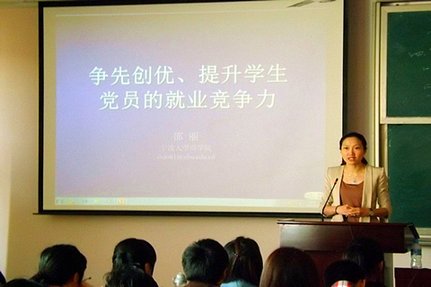在讲座中,邵丽老师从“近年来高校学生党员就业情况分析”、“学生党员就业竞争力的体现”和“提升学生党员就业竞争力的意义和对策”三个方面,探讨了学生党员的就业竞争力,并为在座学员提升就业竞争力提供了对策建议。此外,讲座过程中邵丽老师还与学员们通过互动游戏的方式共同探讨人生意义与理想追求,课堂气氛活跃。