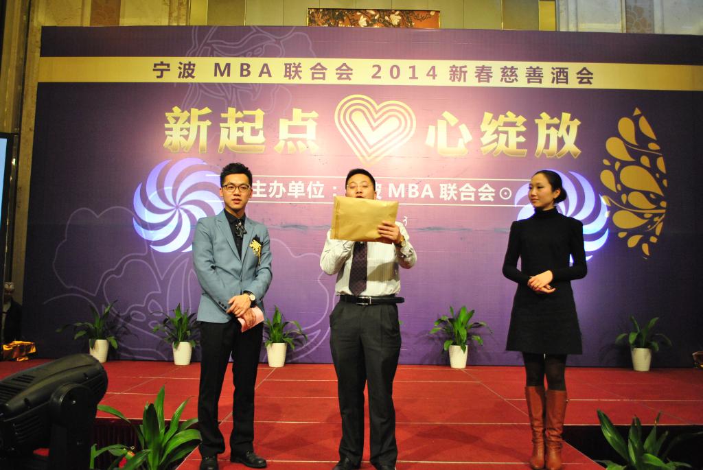 1月3日晚,以“梦起宁大心绽放”为主题的百家乐策略 2014MBA迎春慈善酒会隆重举行。酒会的主题,以“慈善拍卖”为主线,整个过程总共三个“拍卖”环节,拍卖物品主要来自MBA学员的爱心捐赠,形式多样。除了传统的字画、饰品、珠宝等物,还有奇思妙想的物品,现场温馨美妙,拍卖声此伏彼起,气氛热烈。百家乐策略 执行院长熊德平教授还捐赠了“神秘物品”参与拍卖,更十足吊起了所有人的胃口,将晚会推向了高潮。三轮拍卖环节下来,共拍得人民币33850元,全部捐赠给宁大百家乐策略 贫困学生,百家乐策略 党委副书记邵丽老师代表百家乐策略 接受捐赠。百家乐策略 MBA同学在学有所成、业有所精的同时,几年来心系贫困生,积极支持公益事业,奉献一片爱心,乐于承担起社会责任。