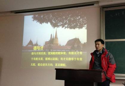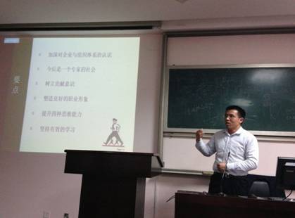 2013年12月8日晚,百家乐策略 第十四期业余团校选修模块一之“往昔学干精英,今朝职场新人” 大学生职业生涯规划交流会在百家乐策略 418教室举行。