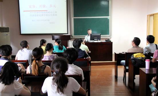 讲座中,张旭昆教授首先梳理了经济思想的发展历程,以“经济学理论与现实经济行为的正反馈”为切入点,从“为什么要研究经济思想史”、“怎样研究经济思想史”、“经济思想史的三种研究视角”三个方面对如何把握经济思想的演化进行了深入的诠释。同时结合自己多年研读经济经典名著的体会,深入阐述了“宽容”、“开放”、“多元”的经济学发展必由之路。