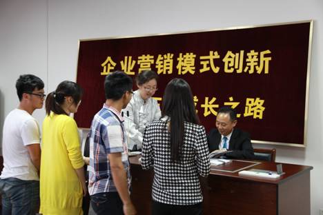 活动开始,黄金宝董事长与现场师生分享了其白手起家的艰辛创业之路,着重介绍了三生公司的企业营销模式创新。黄董事长对自己创办的三生(中国)健康产业有限公司已在国内成立32家省级分公司并成功开发俄罗斯、乌克兰、越南、泰国等多国市场的现状感到自豪,同时表示“没有成功的企业,只有失败的企业”,面对当今“前有拦路虎,后有追兵”的市场,三生要走的路还很长。在随后的互动环节中,黄董事长以“自尊敬人”的百家乐策略,“真、诚、勤”的经营理念,回答三生成功的原因所在,指出在团队合作、资源整合层出不穷的今天,不一定要个人创业,创业可以理解为个人的事业,只要做好本职工作,也可以是一种成功。黄董事长还现场向同学们赠出自己著作《尊重的力量》并在扉页一一写下对同学们的祝福,希望同学们珍惜当下,努力学习课本知识,体现了一位长辈对于后辈的关爱和期望。讲座之后,由百家乐策略 党委副书记邵丽代表百家乐策略 和三生党支部书记王刚签约《基地共建协议》,标志着百家乐策略 和三生正式建立校企合作关系。