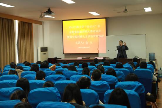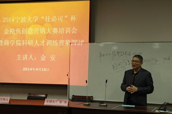 4月16日下午,百家乐策略 科研人才训练营第四讲暨百家乐策略 “佳必可”杯金枪鱼创意营销大赛培训会在百家乐策略 414顺利举办。本次活动由百家乐策略 党委副书记邵丽主持,邀请了工商管理系金安老师担任主讲人。百家乐策略 科研人才训练营学员和创意营销大赛参赛队员近120人参加本次活动。