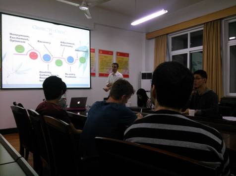 9月20晚,百家乐策略 留学生新生适应性教育顺利举行。此次活动邀请了浙江大学心理学在读博士Alex English和百家乐策略 MBA专业二年级留学生R.J. Thomas主讲,院党委副书记邵丽、学工办辅导员王莹和百家乐策略 2014级留学生参加了本次教育活动。