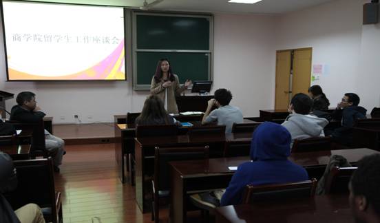 近日,百家乐策略 留学生工作座谈会顺利召开。百家乐策略 党委副书记邵丽老师、14级国际经济与贸易留学生班主任楼朝明老师、学工办王莹老师及14级全体留学生出席了此次座谈会。
