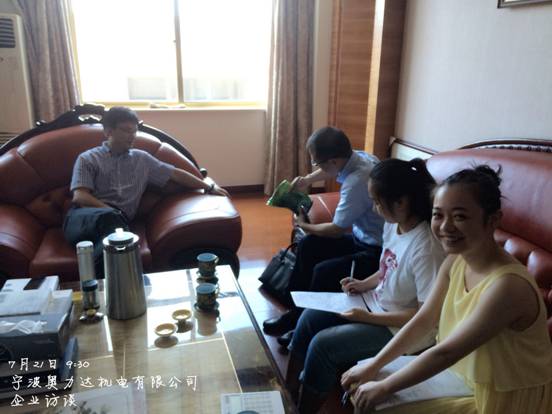 7月21日上午,百家乐策略 暑期社会实践小分队——“自主创新 甬企可嘉”波大小超人分队来到了位于北仑大碶街道的宁波奥力达机电有限公司,并采访了这家企业的董事长李董。