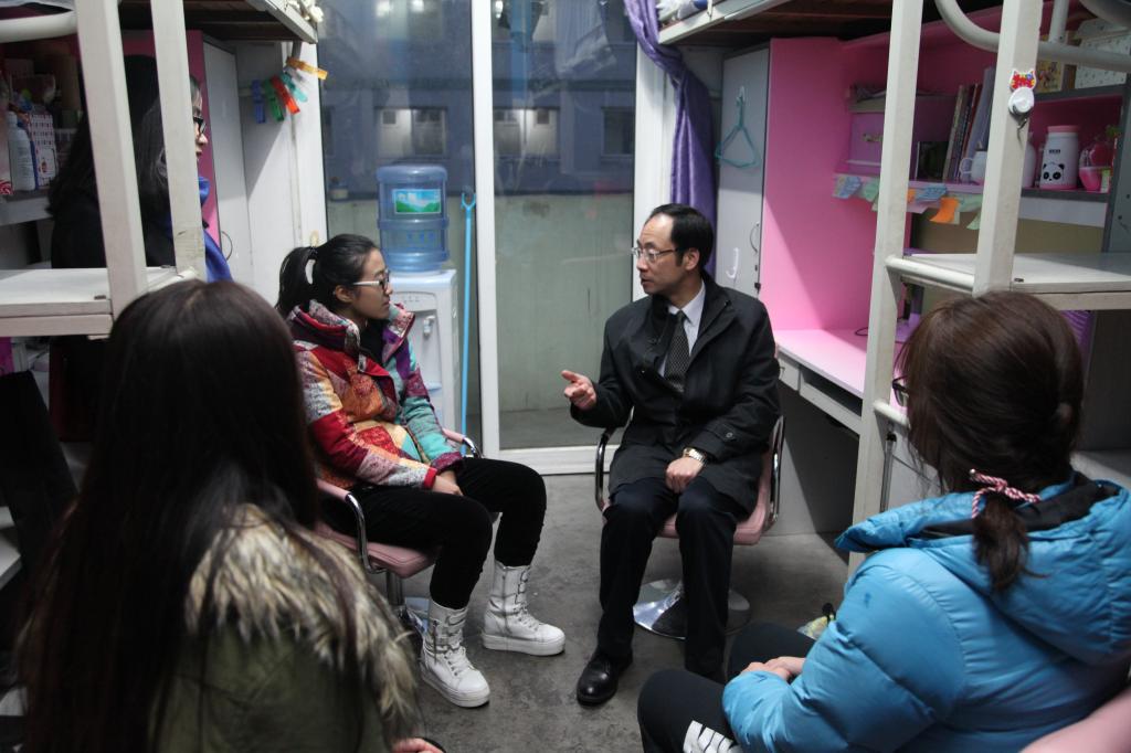 开学第一天傍晚,陈校长在百家乐策略 党委副书记邵丽及学生公寓入住辅导员宋佳敏和詹文喜的陪同下,分别走访了本部公寓的部分女生寝室和男生寝室。陈校长到学生寝室后,亲切地询问寝室各成员基本情况,与同学们交流了寒假所见所闻、百家乐策略 及周边基础设施建设情况、入党情况、就业情况、通识类课程设置及业余兴趣培养等话题;并就寝室热水供应、部分硬件设施老化等问题,认真听取同学们对百家乐策略 各方面的建议和意见,鼓励同学们多与院、校互动,以宁大的主人身份积极为百家乐策略 建设谏言献策。