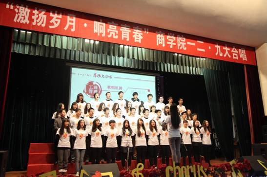 本次大赛每支参赛班级共有一首必选曲目和一首自选曲目。首先上场的是会计二班,一开始便以一首《歌唱祖国》将全场的气氛点燃,随后的代表队的演出更是精彩纷呈。整齐一致的服装,独特的队列次序,再加上歌曲之外各班精心设计的装饰表演:整个比赛不仅是一场听觉冲击,更是一场视觉盛宴。其中,会计一班的一首《最初的梦想》配以班级同学的小提琴表演,别出一格;金融二班则把温馨励志的《明天会更好》用动作演绎出了动感;工商管理的《精忠报国》配以高昂的气势,优秀的歌技令人印象深刻。最值得期待的还是留学生班级,一首《trouble is a friend》在多人的完美配合下跳跃在每个人的耳际,接下来的一首《月亮代表我的心》也同样以创新和组合赢得全场热烈喝彩。雄壮嘹亮的革命歌声响彻小剧场内外,比赛中也是高潮迭起。艺术团团长俞楠在比赛的末尾给出了此次比赛极高的赞扬,同时也分别为各班的合唱表演作出了相关指导。