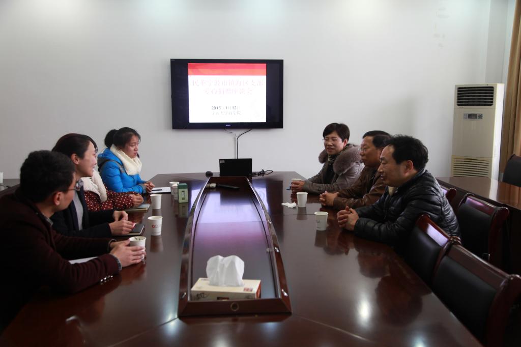 1月13日下午,民革宁波市镇海区支部爱心捐赠座谈会在百家乐策略 412室顺利举行。民革宁波市镇海区支部副主委黄元忠先生、支部代表许锦绣女士、院党委副书记邵丽、信管系谢友才、学工办陈彬及两名2014年度受助生出席了座谈会。