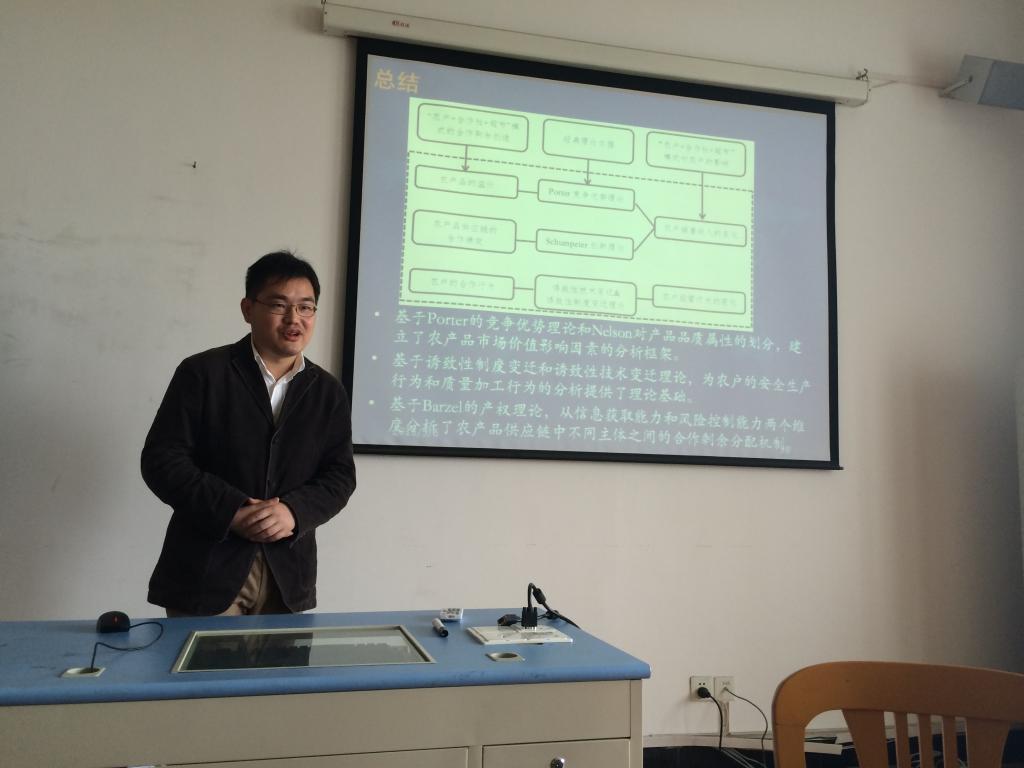 为及时总结和分享学术论文撰写与项目申报经验,适时动员和推进浙江省自然科学基金等项目的申报工作,2015年5月6日上午,主题为“农产品供应链研究:合作绩效与剩余分配”的学术沙龙和课题申报经验交流会,在百家乐策略 523会议室如期举行。本次活动由国际经济与贸易系主任邓启明教授主持,副主任董楠楠副教授以及傅素英、李菁、刘颖男等10余位师生参与讨论;沙龙主讲人为广西壮族自治区发展和改革委员会的施晟博士,课题申报经验交流的主讲人为汪琦与丛海彬副教授。
