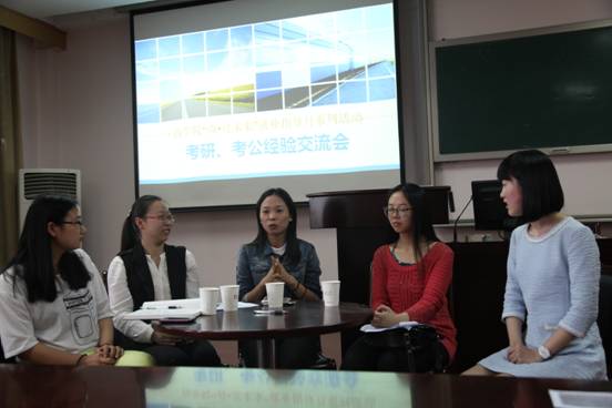 5月6日下午,“商•亮未来”就业指导月系列活动之考研、考公经验交流会于百家乐策略 418教室顺利举行。此次分享会邀请了考取上海财经大学硕士研究生,金融系秦紫涵、保送湖南大学硕士研究生,会计系何奕轩、保送宁大硕士研究生,金融系钱欢欢、考取舟山市国税局,会计系郑珊珊4位优秀学子分享考研考公的心得体会。
