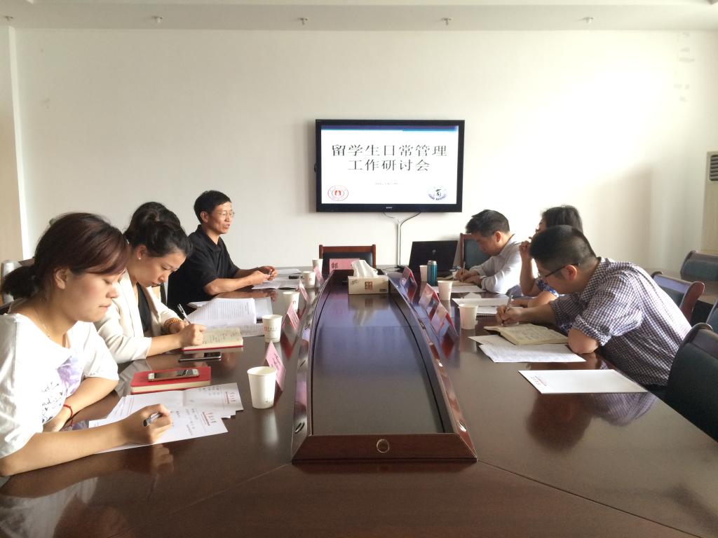 9月16日下午,百家乐策略 留学生日常工作管理研讨会在412室举行。会议由院党委副书记邵丽主持、国际合作处副处长吴锡存主讲、百家乐策略 留学生班主任和学工办留学生部人员参加了会议。