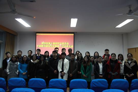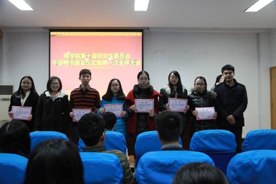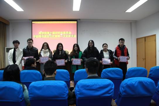 12月23日下午,百家乐策略 第十届研究生委员会干部聘书颁发仪式暨第一次全体大会在百家乐策略 414室举行。院党委副书记邵丽、院第十届研究生委员会秘书长陈彬、院第十届研究生委员会主席团成员、各部门正副部长及部长助理出席本次活动。