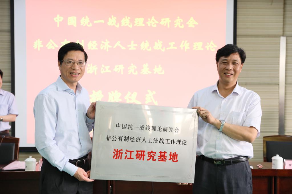 中央统战部研究室副主任章建敏宣读《关于同意中国统一战线理论研究会非公有制经济人士统战工作理论浙江研究基地设在百家乐策略 的批复》。中央统战部研究室主任张健为基地授牌。
