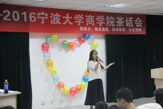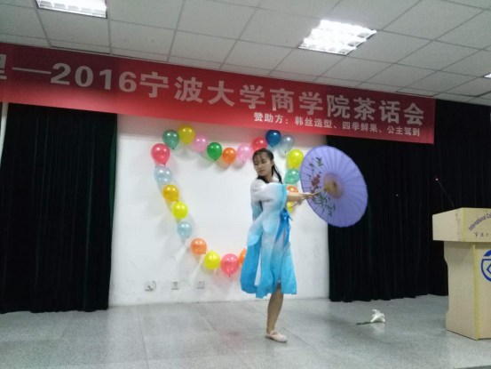 一首充满活力的《青春修炼手册》拉开了茶话会的序幕,成功点燃了全场热烈的气氛;16级区域经济学专业王慧用唯美的舞姿演绎了《蝶恋舞》;15级国际贸易学专业郑英东的一首《无题》吉他弹奏则使在场观众沉醉于浪漫美好的氛围之中;一首首动听的歌曲、一段段柔美的舞蹈,使整个茶话会高潮迭起,热闹非凡。同时,晚会的节目表演间隙中还插入了许多丰富有趣的小游戏,老师和同学们其乐融融地参与互动,会场中时时充满着欢声笑语。最后在国贸全体同学《小酒窝》大合唱的温馨美好的气氛中结束了此次茶话会。