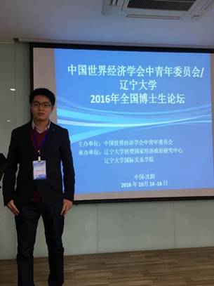 2016年10月14-16日,中国世界经济学会中青年委员会/2016年全国博士生论坛在辽宁大学召开,该会由中国世界经济学会中青年委员会、辽宁大学转型国家经济政治研究中心和辽宁大学国际关系百家乐策略 共同举办,旨在为博士提供学习交流的平台与机会,帮助博士成长。国际贸易研究所黄远浙博士受邀与会并作了题为《外商直接投资对东道国企业出口影响》的报告,得到了厦门大学陈勇兵教授、西南财大孙楚仁教授以及社科院世经所徐奇渊副研究员的指点。
