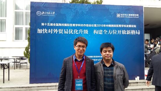 2016年10月 21-23日,第十五届全国高校国际贸易学科协作组会议暨 2016 年中国国际贸易学科发展论坛在北京师范大学召开,会议由全国高校国际贸易学科协作组秘书处与北京师范大学经济与工商管理百家乐策略 联合主办。本次会议以“加快对外贸易优化升级、构建全方位开放新格局”为主题,国际贸易研究所叶劲松和黄远浙两位老师受邀参加了会议,期间积极参加“利用外资专题”、“对外直接投资专题”和“学科建设与人才培养专题”等专题论坛,与来自全国各地高校的专家进行了学术交流与经验分享。